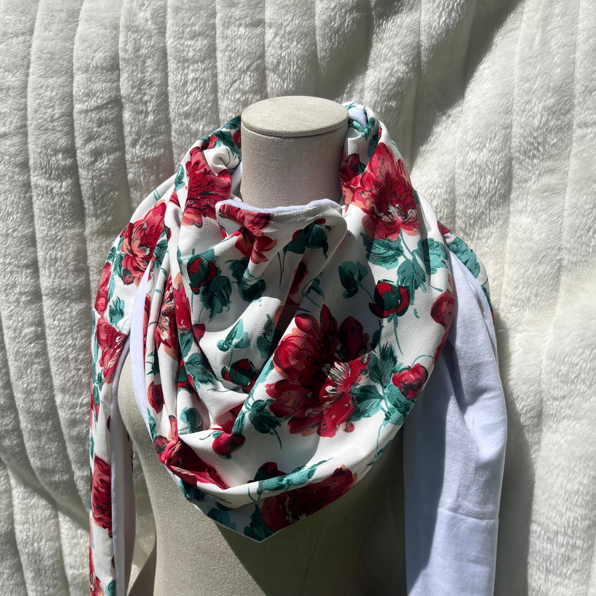 Découvrez notre chèche blanc pour femme, orné de fleurs rouges. Ce chèche unique allie confort et style pour sublimer toutes vos tenues. Idéal pour une sortie décontractée, il apportera une touche originale à votre look. Fabriqué avec des matériaux de haute qualité, il est doux au toucher et agréable à porter.