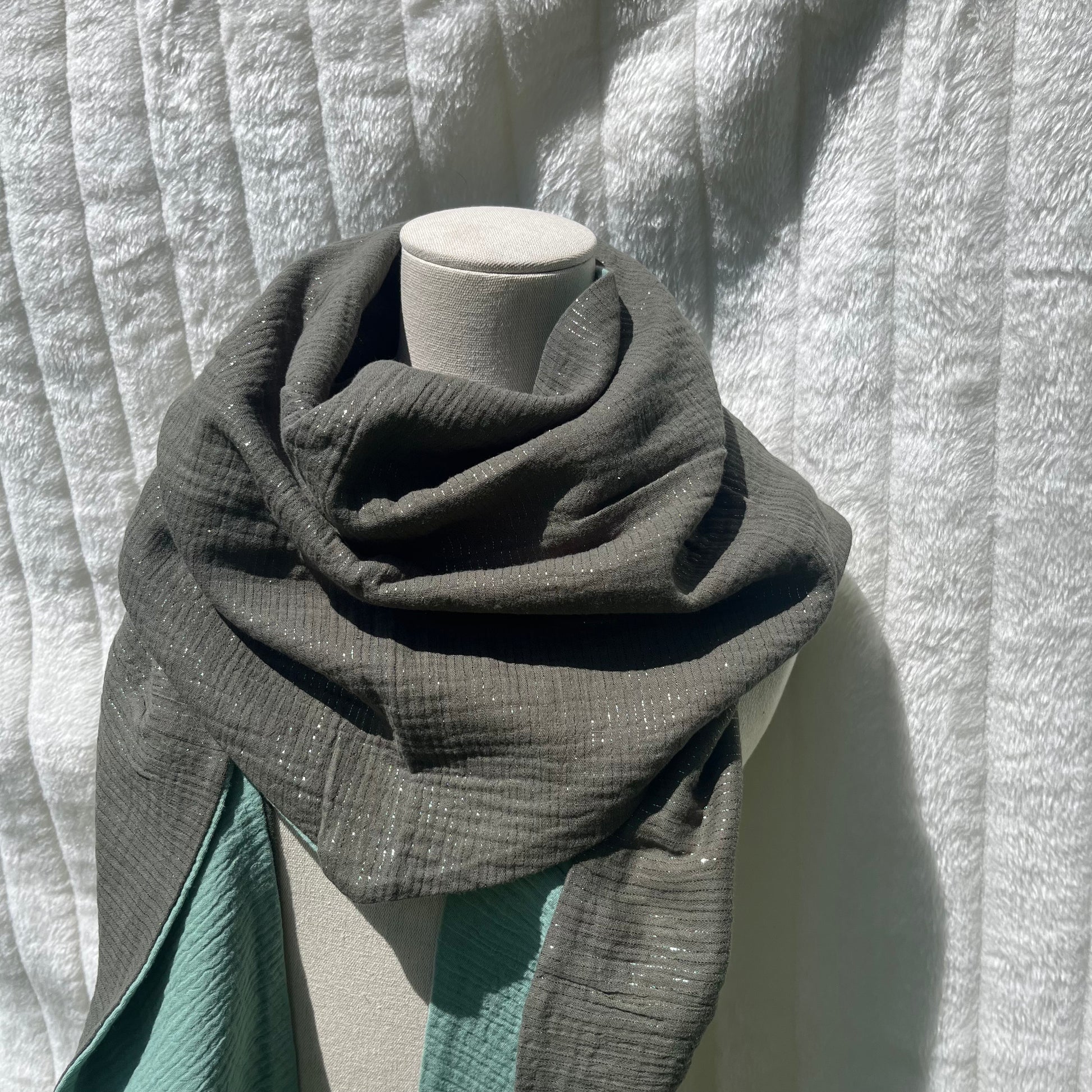 Découvrez notre élégant chèche kaki pailleté et bleu pour femme. Ce chèche unique allie confort et style pour sublimer toutes vos tenues. Idéal pour une sortie décontractée, il apportera une touche originale à votre look. Fabriqué avec des matériaux de haute qualité, il est doux au toucher et agréable à porter.