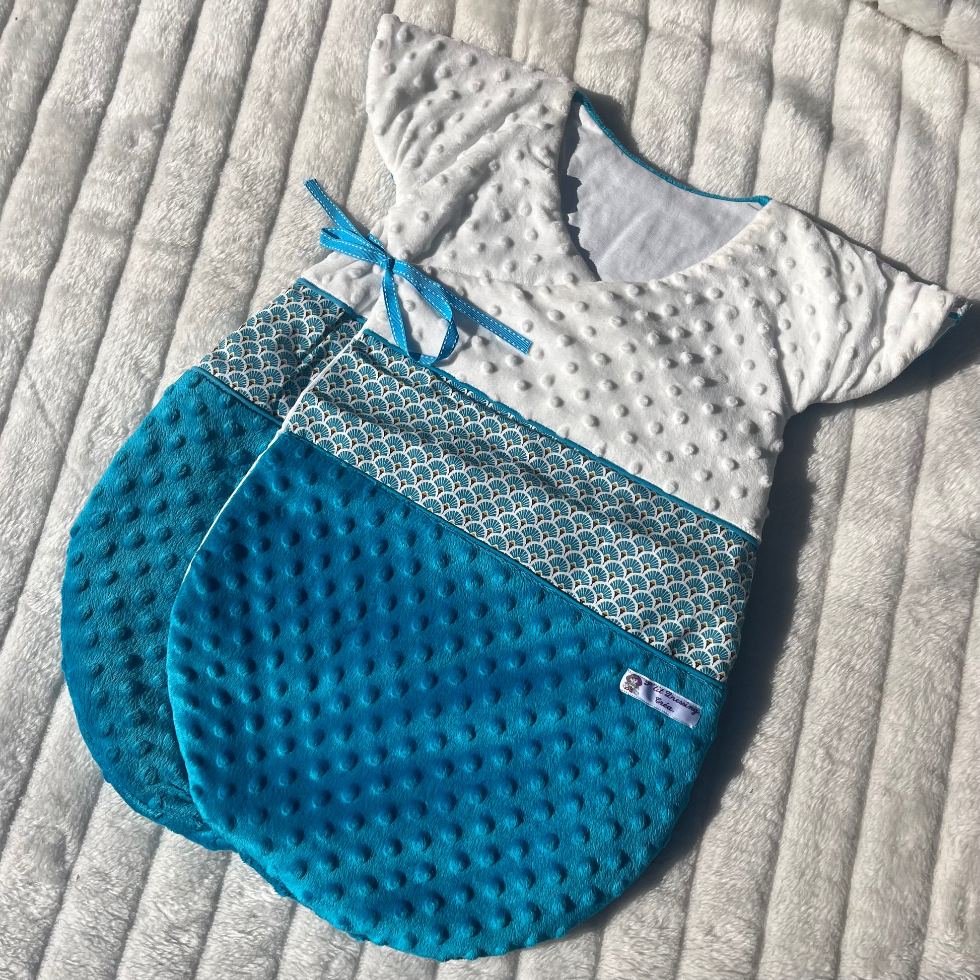 Cette magnifique gigoteuse artisanale offrira des nuits paisibles et confortables à votre nouveau-né. Fabriquée à partir de tissus doux et respirants, cette turbulette permet un confort optimal et une sécurité accrue pour les nuits de votre bébé.