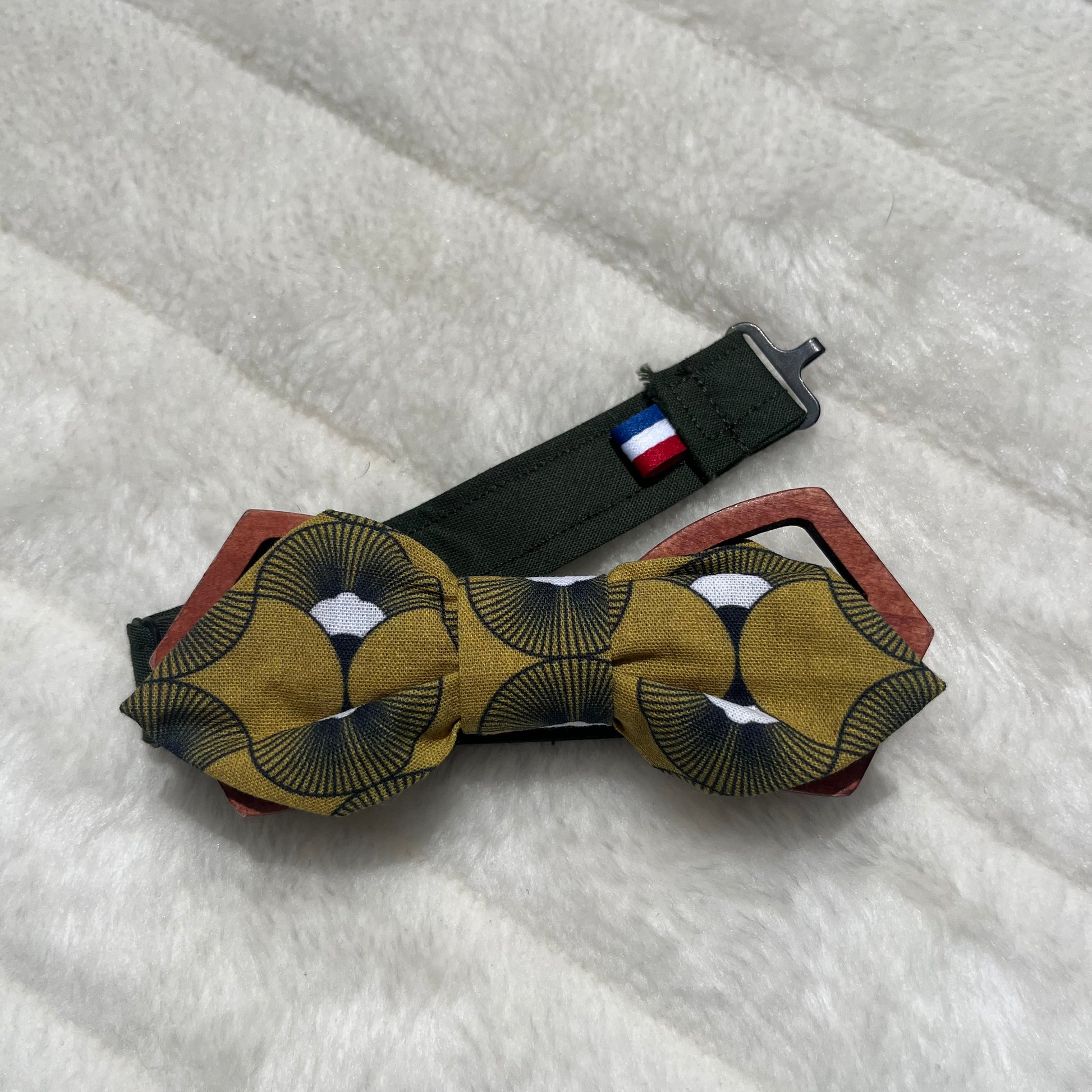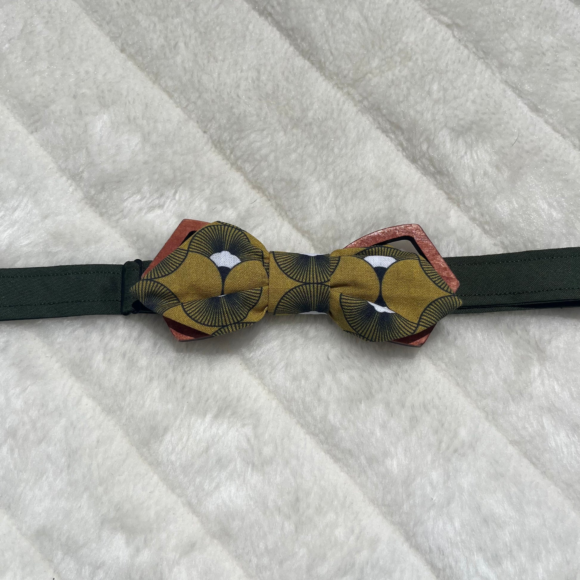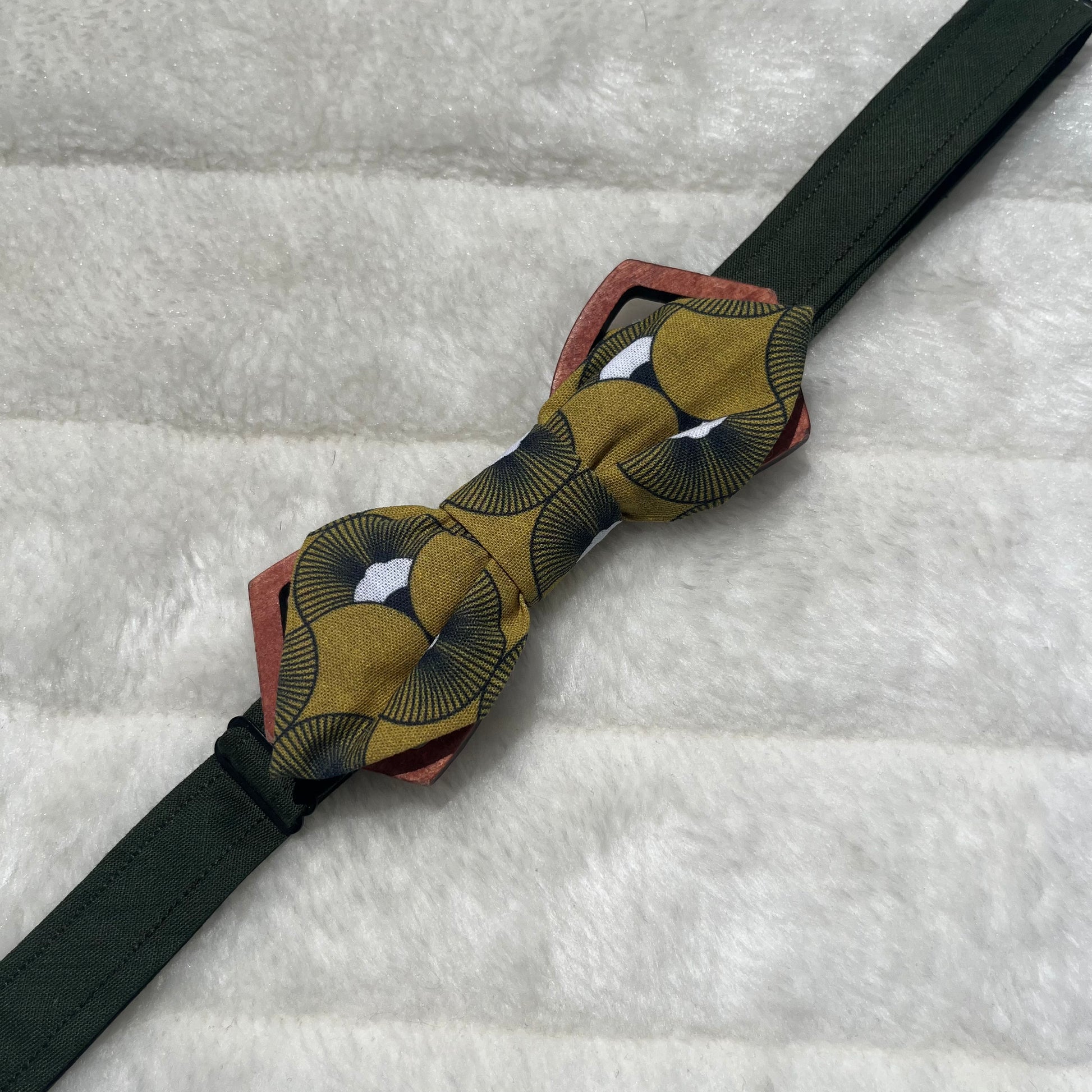 Nœud papillon vert moutarde à motif géométrique