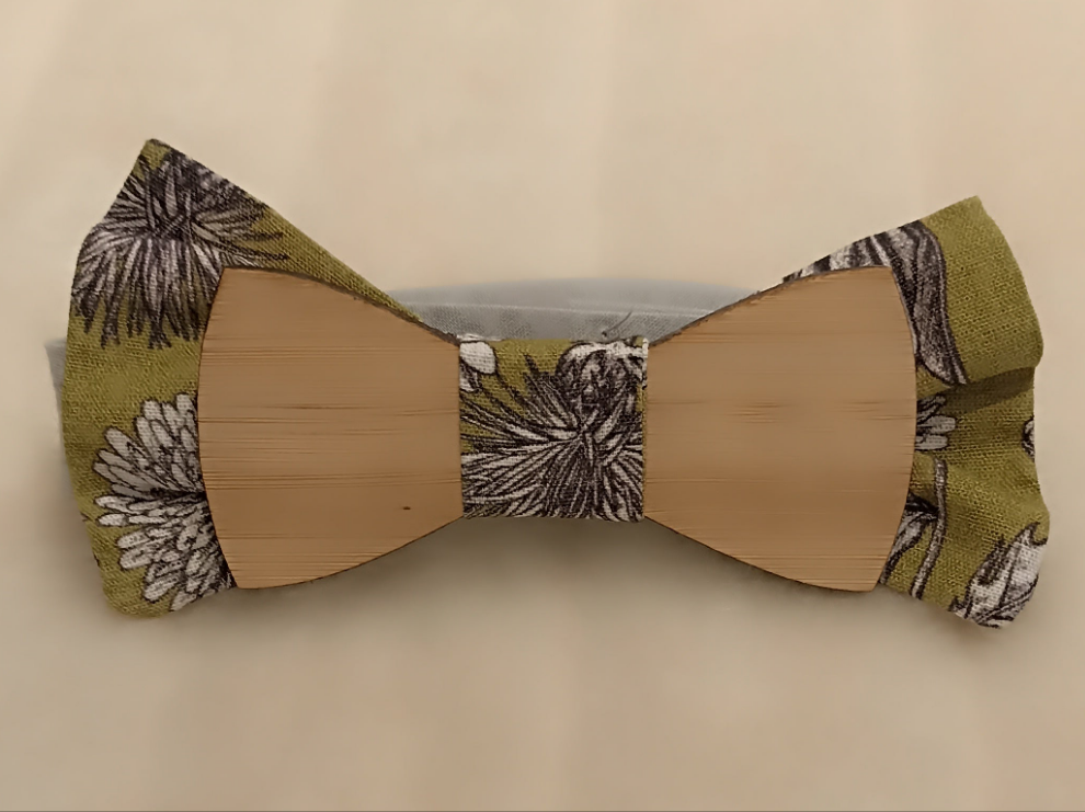 Ce magnifique nœud papillon, mélangeant bois, et tissu en coton, saura surprendre lors de mariages ou d'événements habillés.