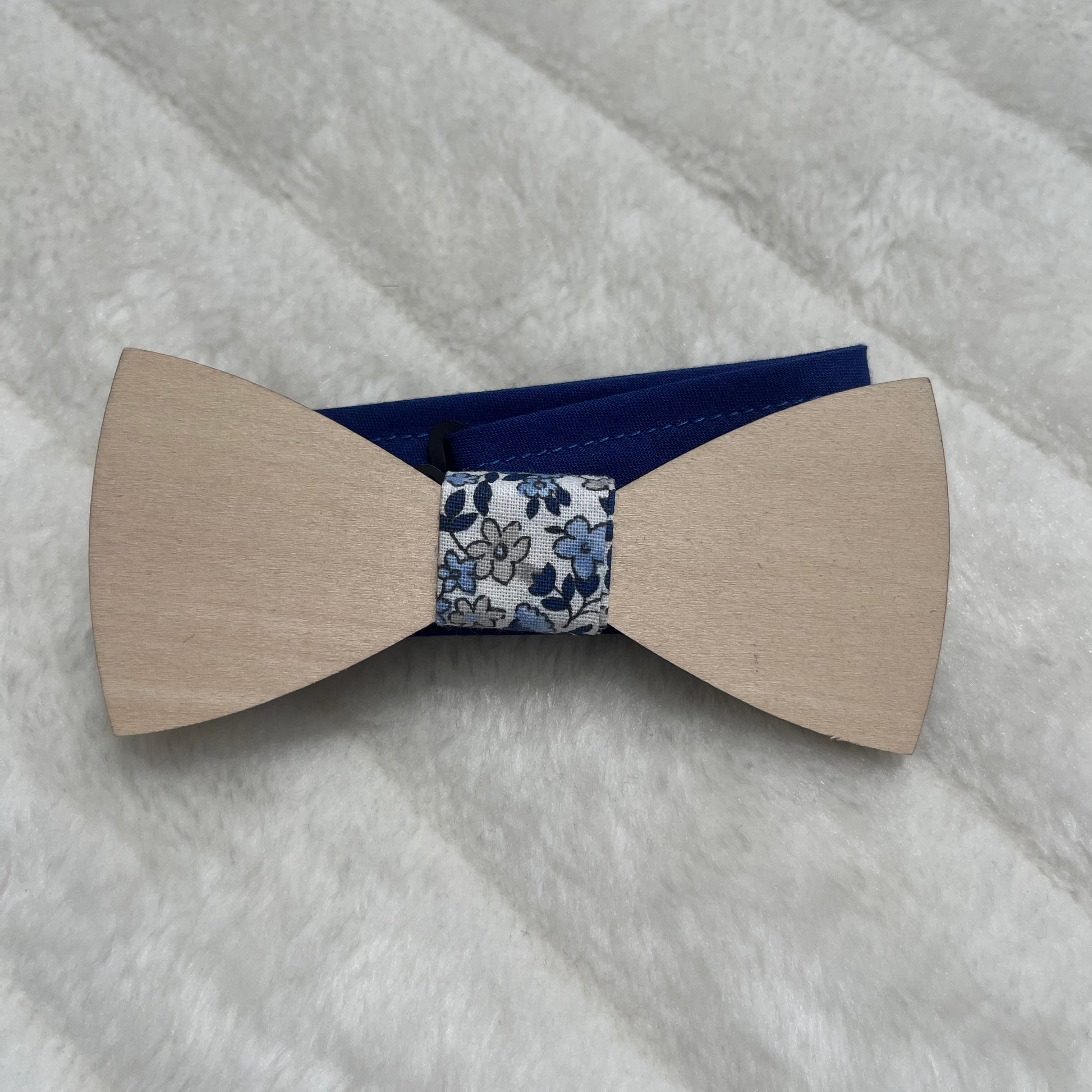 Ce magnifique nœud papillon en bois et tissu fleuri, saura surprendre lors de mariages ou d'événements habillés.